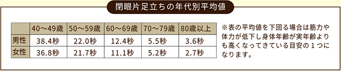 試していただくのは です。スマートフォンなどのストップウォッチをセットしてから腰に手を当て両眼を閉じ、片方の足を上げてキープします。