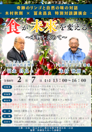 奇跡のリンゴと自然の味の対話 | 木村秋則×冨永昌良 特別対談講演会【令和8年 2月7日【土】13:00〜】