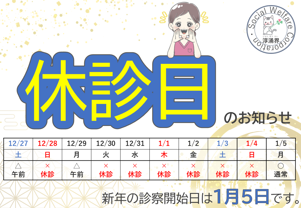 *2025年12月29日(月)は午前中のみ診察を行います。